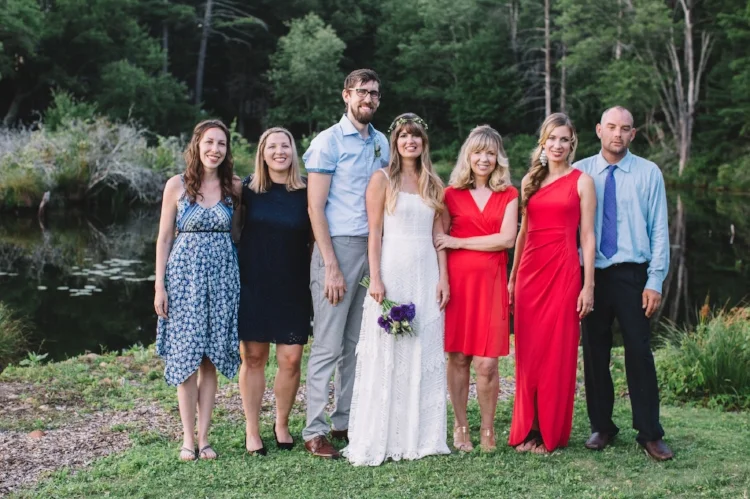 We had an intimate ceremony at a beautiful lake house (okay, technically a "pond house" but that just sounds weird) that we rented through VRBO on Walker Pond in Sturbridge, MA with just my two best friends (an Amy from each coast!), my mom, and my sister's family (her husband and my nephews). Although my dad passed away in 2008, he was there in spirit and I quoted him in my vows. Craig's parents and his sister's family were unable to join us in person, but they attended virtually from Minnesota via Skype!
